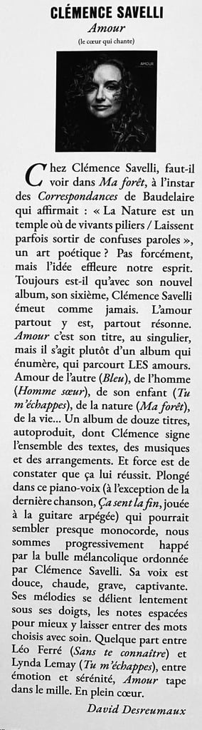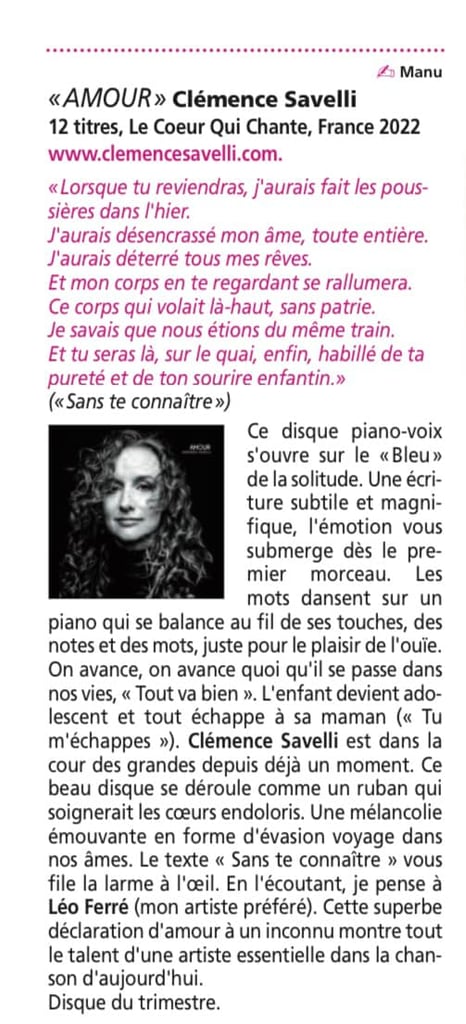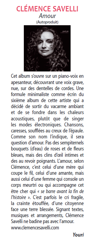 « A priori, rien ne peut empêcher Clémence Savelli d’accéder au grand succès (…). La chanson de C.S, d’un grand classicisme, est belle épure,